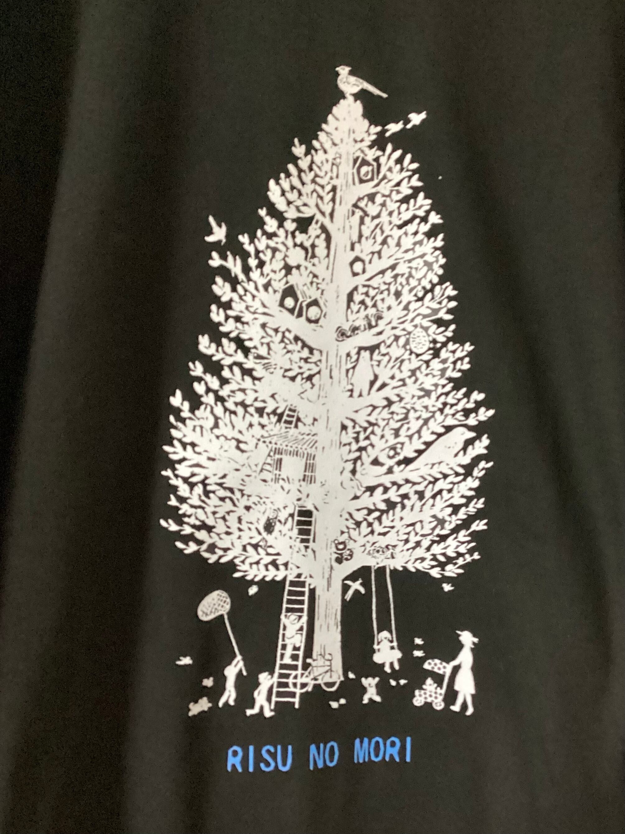 ホワイトに続いて、ブラックTに白のプリントです。上着を着た時も白プリントがアクセントになります。
